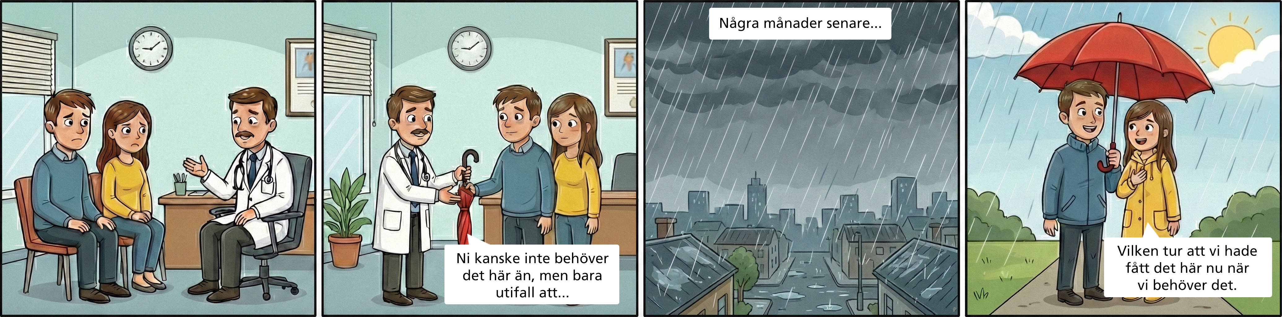 - patienten får paraplyet i förebyggande syfte eftersom vi egentligen aldrig vet när det kan börja regna, men nu kan paraplyet tas fram när det verkar bli regn.